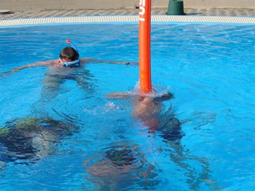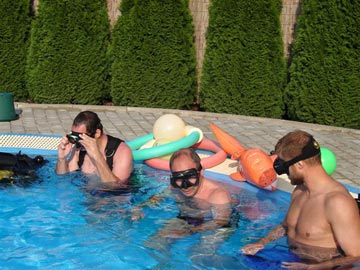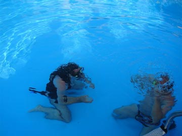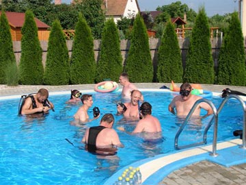 felengedés szabadtüdövel, víz alatti súlyzacskók
