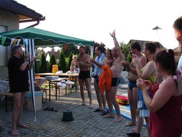 a résztvevöknek. Na meg a fö étek, a babgulyás.